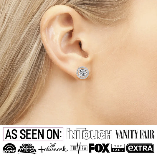 18k White Gold Plated Halo Stud Earrings with Diamond Crystals Gift for Women